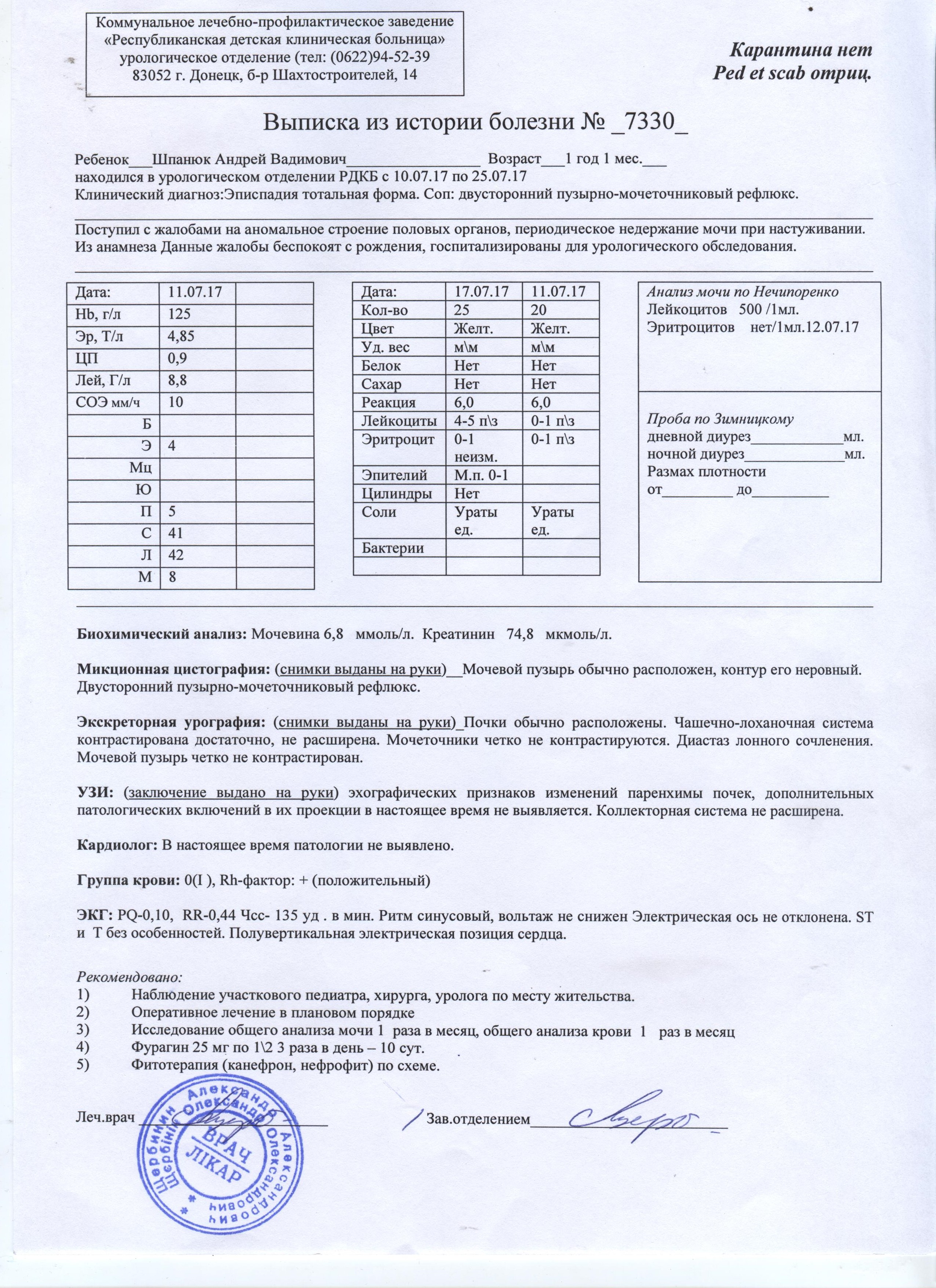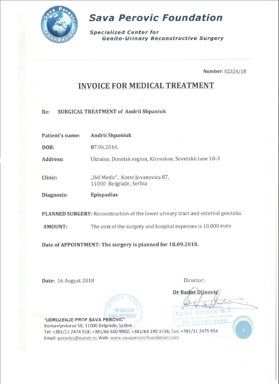 Времени до операции совсем мало, операция 18.09.2018 в Белраде, Сербия. У Андрюши тяжелая врожденная урологическая патология .Лечение которой в наших больницах не возможно. Родители обратились за помощью к доктору Радошу Джиновичу, клиника Белмедик. Унего есть опыт в проведении успешных операций такого рода. 16 августа получен счет на лечение но сумма не посильна родителям !!! Пожалуйста помогите собрать необходимую сумму и подарить ребенку шанс быть как все здоровым !!!
