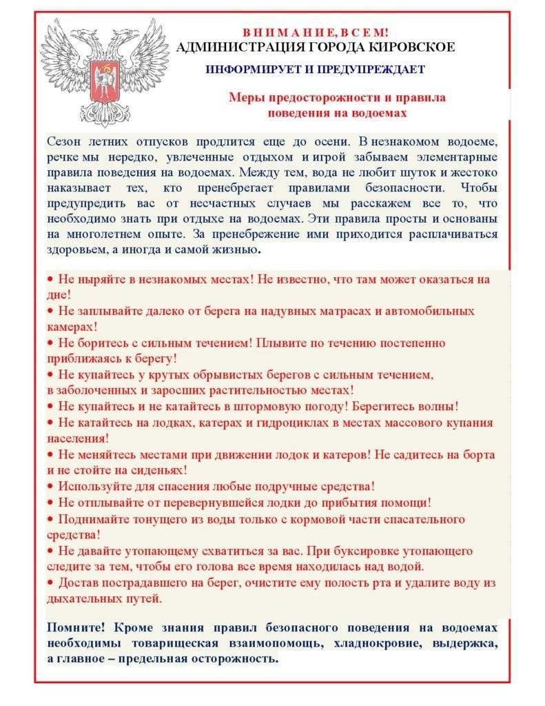 - Не катайтесь на лодках, катерах и гидроциклах в местах массового купания населения!