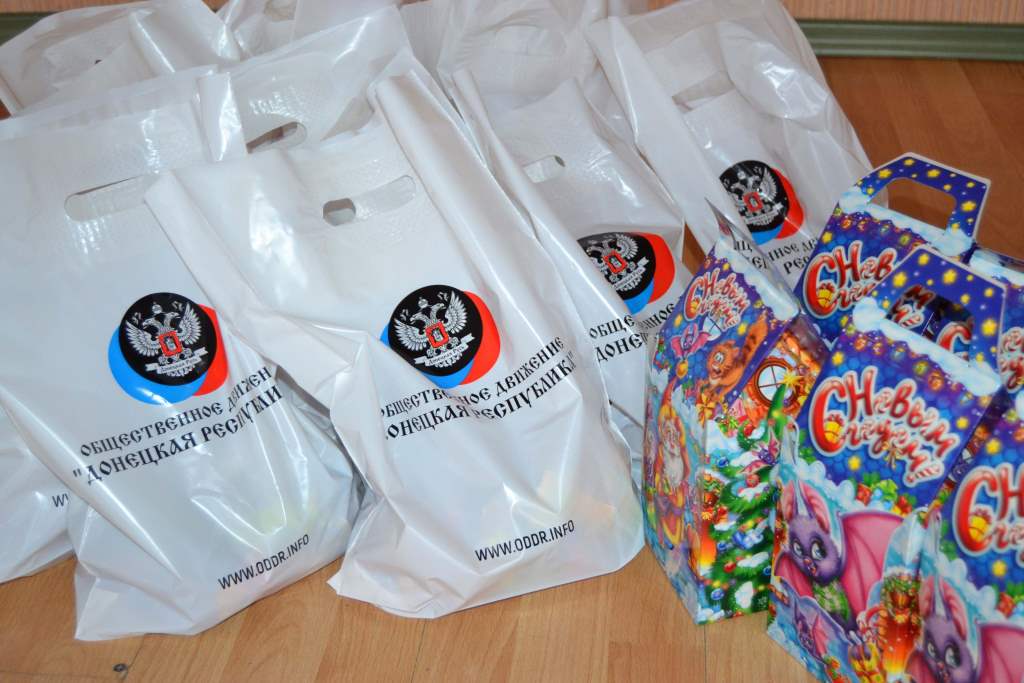 В завершении концертной программы детям с особыми потребностями вручили подарки от Общественного Движения «Донецкая Республика», Храма Иоанна Кронштадского, КП «Енакиевский хлебозавод», ООО «МКС», а также частных предпринимателей Инны Хомишиной и Олега Лукань. Подарки очень понравились детям, которые с интересом открывали пакеты и с удовольствием рассматривали содержимое.