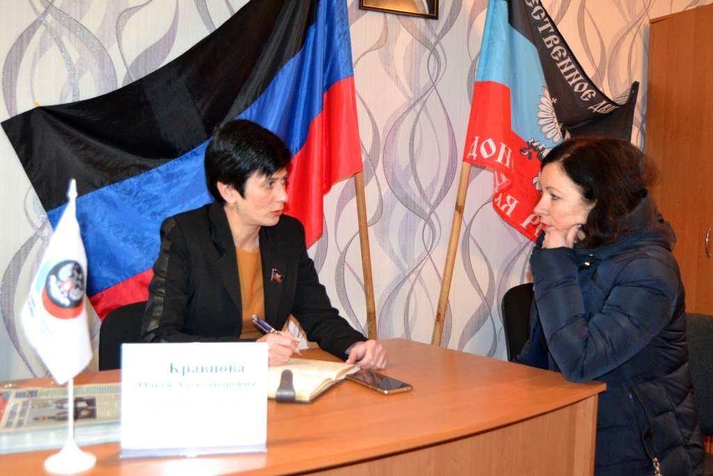 Во вторник, 17 декабря, в общественной приемной Председателя ОД «ДР» Дениса Пушилина в городе Кировское провела приём граждан депутат Народного Совета Донецкой Народной Республики Ольга Кравцова.