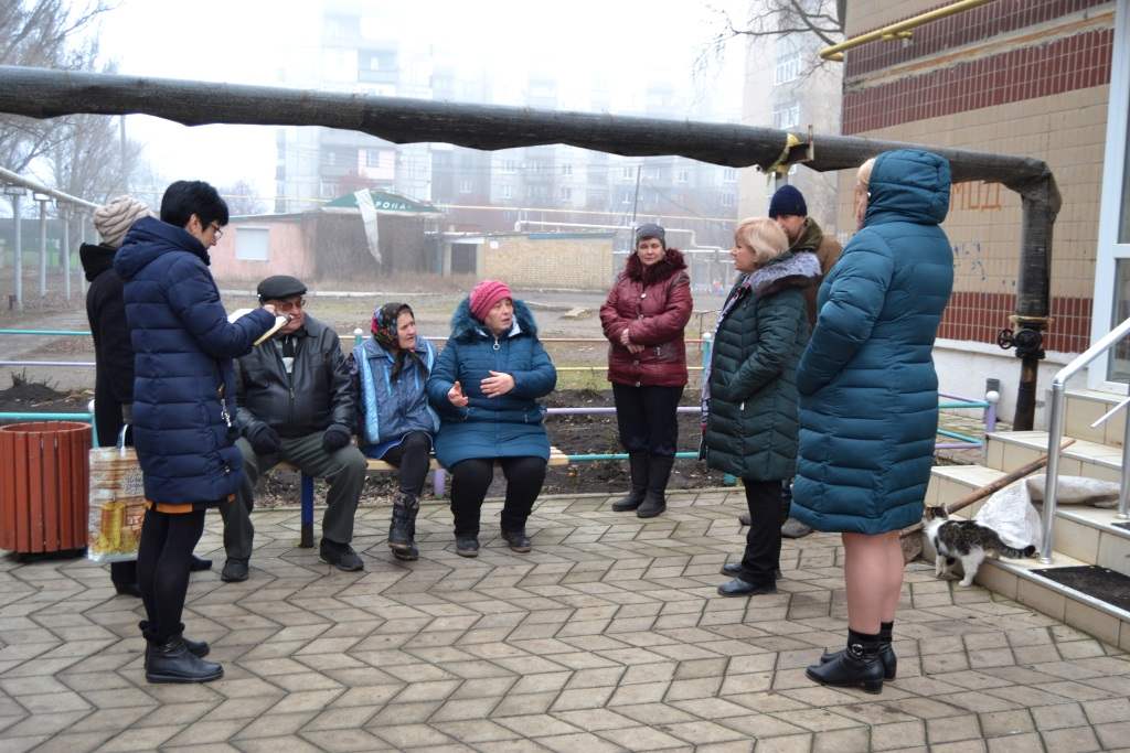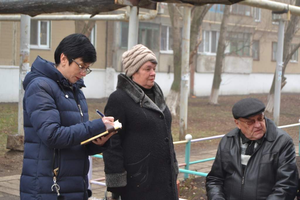 В среду, 18 декабря, депутат Народного Совета ДНР Ольга Кравцова встретилась с жителями дома № 19 микрорайона Молодежный города Кировское. На встрече также присутствовала руководитель общественной приёмной Председателя Общественного Движения «Донецкая Республика» Дениса Пушилина в городе Кировское Нина Сонина.