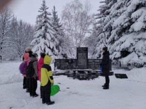 Дети посетили памятник Воинам Интернационалистам. Ребята услышали рассказ о войне, узнали о воинах – земляках, воевавших в Афганистане. Так же подрастающее поколение почтило минутой молчания, всех солдат, не вернувшихся в родные края. Сотни тысяч бойцов прошли через нечеловеческие испытания в пустынях и горах, в тропиках и джунглях. Чтобы соотечественники не забывали о подвиге интернационалистов, и был учрежден особый день в феврале.