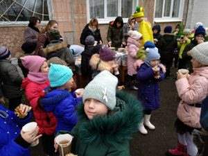 А потом Скоморох пригласил детей к самовару. Все с удовольствием полакомились вкусными блинами, и выпили горячего чая с вареньем.