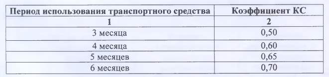 Коэффициент КС применяется только для транспортных средств, находящихся в собственности физических лиц и физических лиц — предпринимателей, использующих транспортное средство не более трех месяцев в календарном году, и для транспортных средств, находящихся в собственности или во владении юридических лиц, использующих транспортное средство не более шести месяцев в календарном году.