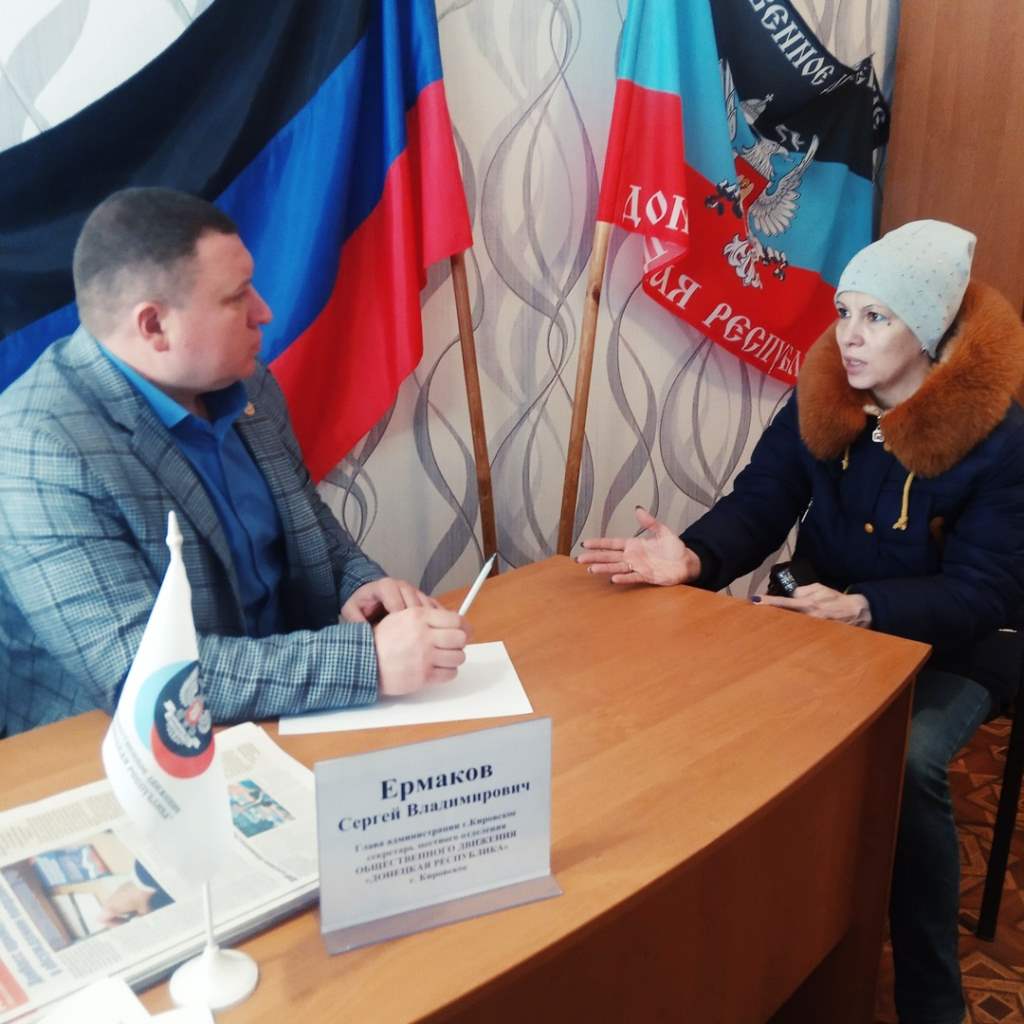Во вторник, 10 марта, глава администрации города Кировское, секретарь местного отделения Общественного Движения «Донецкая Республика» Сергей Ермаков провёл приём граждан в общественной приёмной Председателя ОД «ДР» Дениса Пушилина в городе Кировское.
