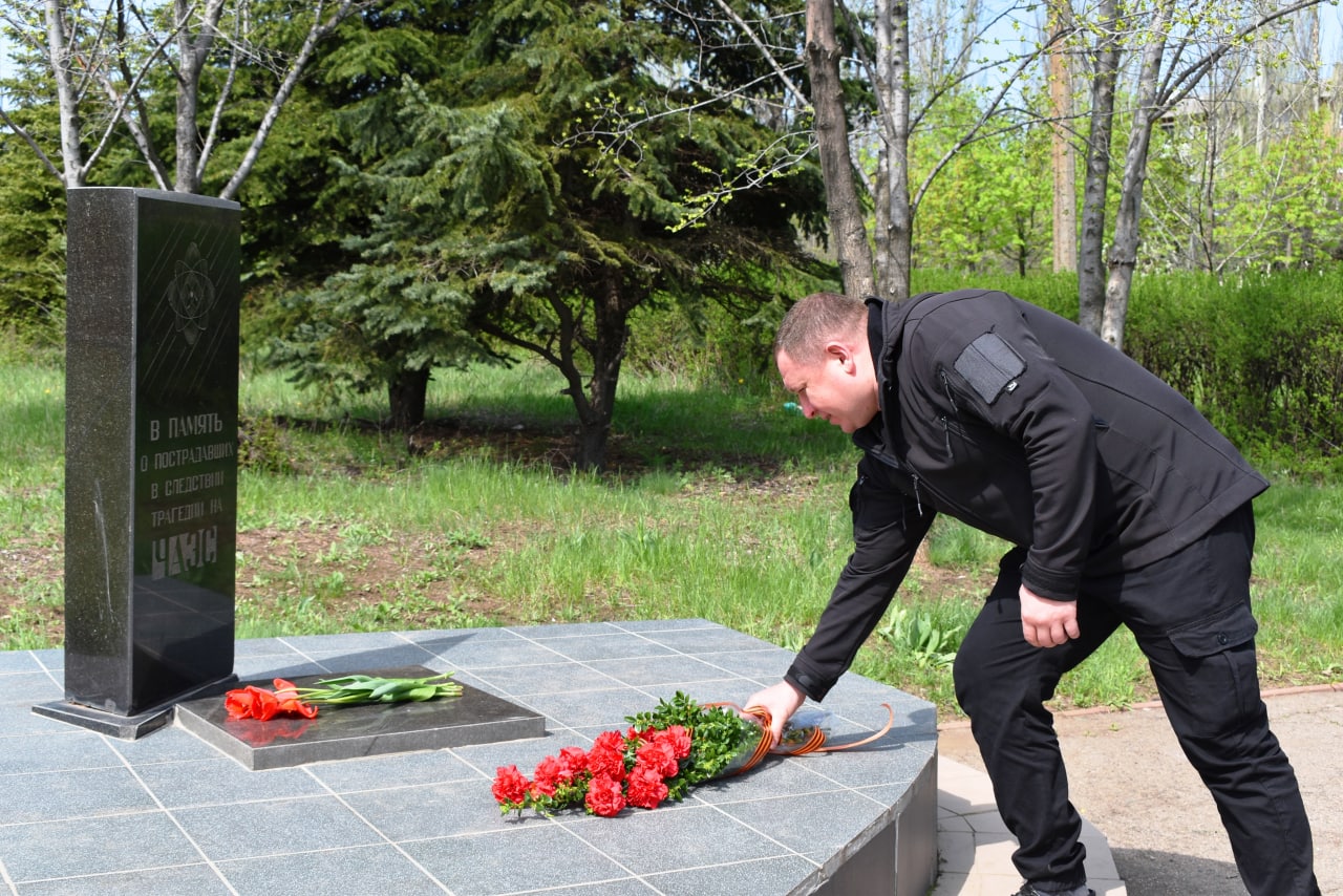 Сегодня, 26 апреля, в 36-ю годовщину аварии на Чернобыльской АЭС глава администрации города Кировское, секретарь местного отделения Общественного Движения “Донецкая Республика” Сергей Ермаков, общественники и представители культуры почтили память ликвидаторов аварии и возложили цветы к мемориалу ликвидаторам катастрофы на Чернобыльской атомной электростанции.