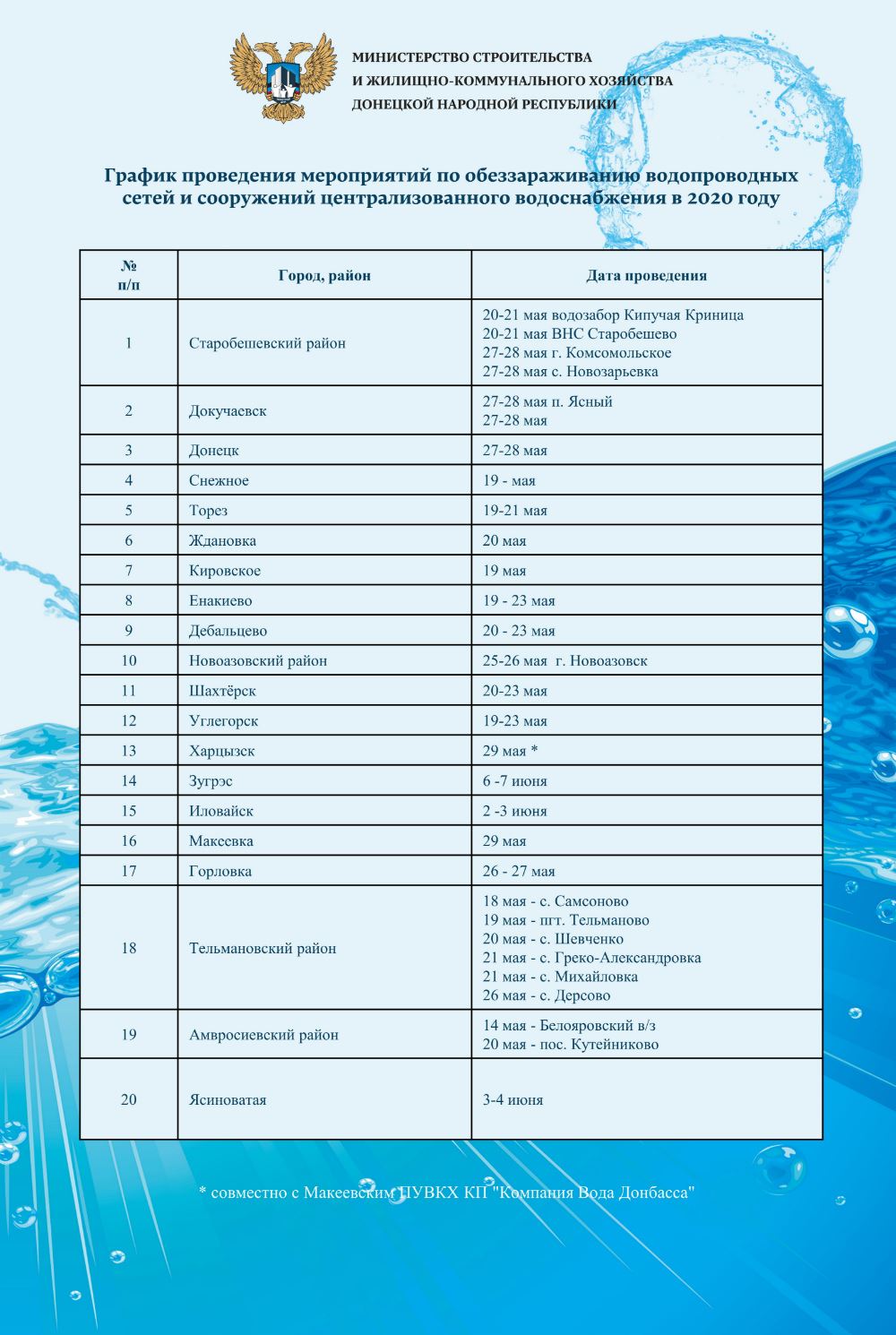 С 19 мая в городах и районах ДНР начнется хлорирование воды. Дезинфекция водопроводов завершится в июне.