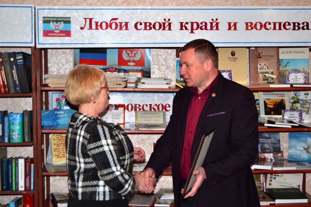 В среду, 27 мая, глава администрации города Кировское, секретарь местного отделения Общественного Движения “Донецкая Республика” Сергей Ермаков, начальник внутренней политики, руководитель исполкома МО ОД “ДР” Александра Бабанина и начальник отдела культуры администрации города Кировское Ольга Языкова поздравили сотрудников Кировской городской библиотеки с профессиональным праздником.