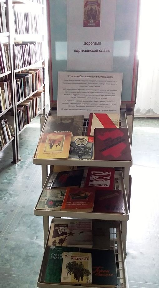 В Кировской городской библиотеке в секторе обслуживания взрослых оформлена книжная выставка «Дорогами партизанской славы». На выставке представлены книги о мужестве и героизме партизан. Особое внимание привлекают книги о подпольщиках земли донецкой. Дерзкие диверсии, рискованные операции патриотов, подлость предателей, зверства фашистов – все это оживает перед глазами читателей.