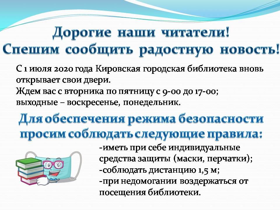 Кировская городская библиотека информирует своих читателей Posted on01.07.2020Authoradmin    135