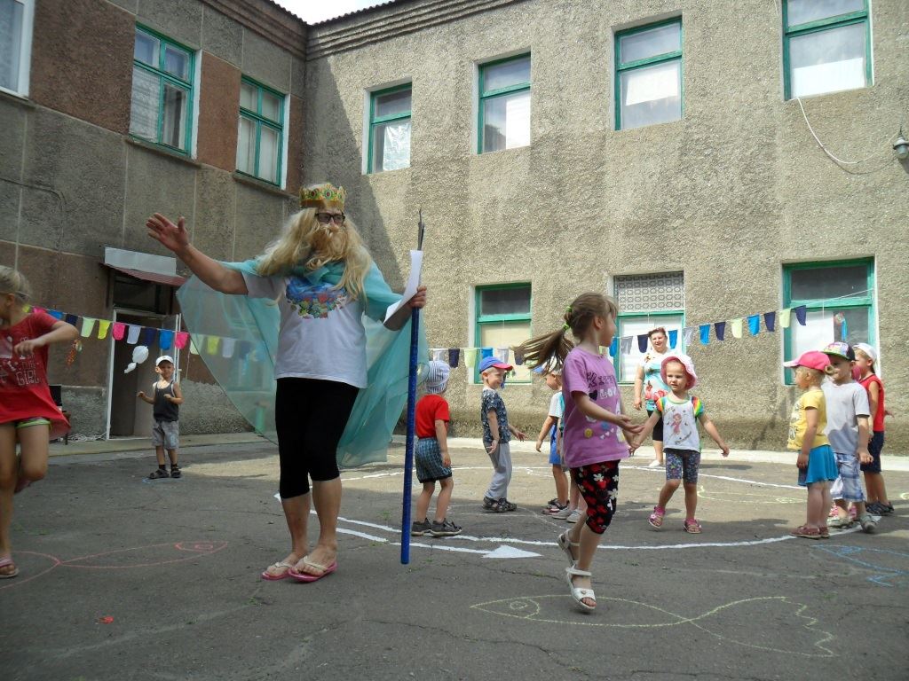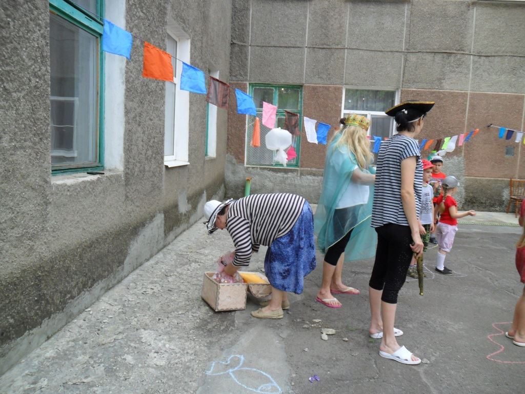 С помощью схем и карт дети помогали мифическому персонажу Нептуну найти его сокровище, которое спрятали от него недруги. Преодолевая препятствия на своем пути к сокровищу дети проходили эстафеты и игры с водой.