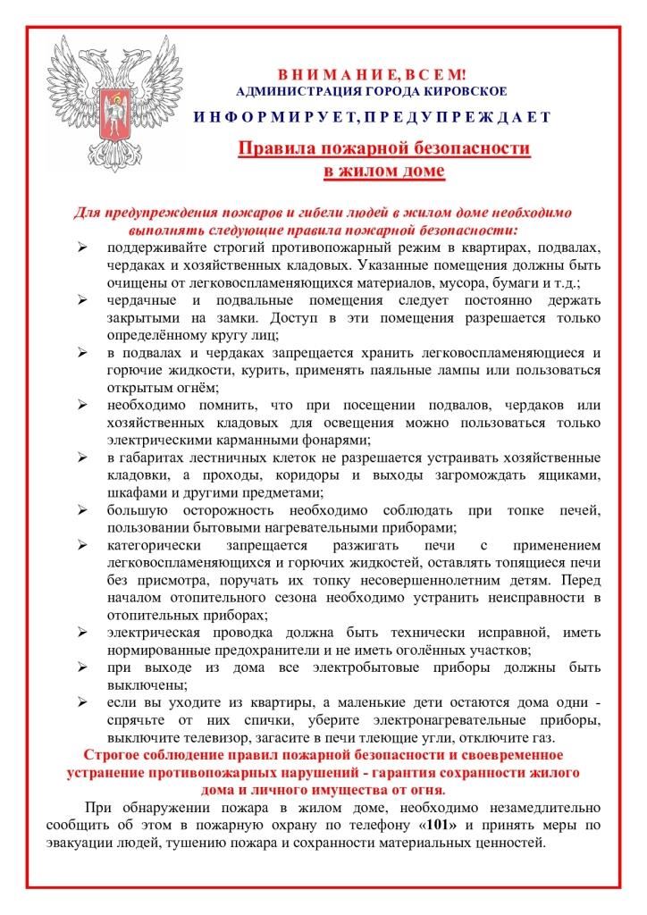 Информируем Вас, что на территории Донецкой Народной Республики участились случаи возникновения пожаров в государственных многоквартирных домах.