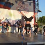 В поздравительной концертной программе приняли участие творческие коллективы города: воспитанники Дома детского творчества «Латинский квартал», «Весёлые нотки», студия современного танца «Микс Денс» и коллектив барабанщиц, народный вокальный коллектив «Голос» и образцовая студия современно-эстрадного танца «Дельсарт», а также брейк- данс команда «Атом».
