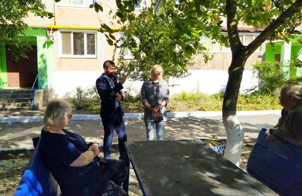В среду, 9 сентября, депутат Народного Совета ДНР Тамер Абду встретился с жителями дома №26 по улице Шахтёрская города Кировское. На встрече также присутствовали помощник секретаря местного отделения Общественного Движения «Донецкая Республика» Елена Лукань и руководитель общественной приемной Председателя ОД «ДР» в городе Кировское Нина Сонина.