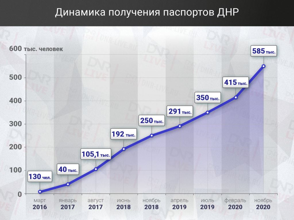 С мая 2019 года Миграционная служба МВД ДНР начала прием заявлений на получение российского гражданства. На данный момент российское гражданство получили более 170 тысяч жителей ДНР.