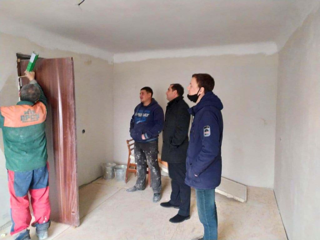 Первый заместитель главы администрации города Кировское Васил Шергелашвили проинспектировал выполнение восстановительных работ дома №18 по улице Шевченко, который был разрушен во время боевых действий в городе Кировское. Проводятся отделочные работы, установка сантехники.