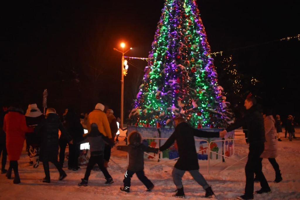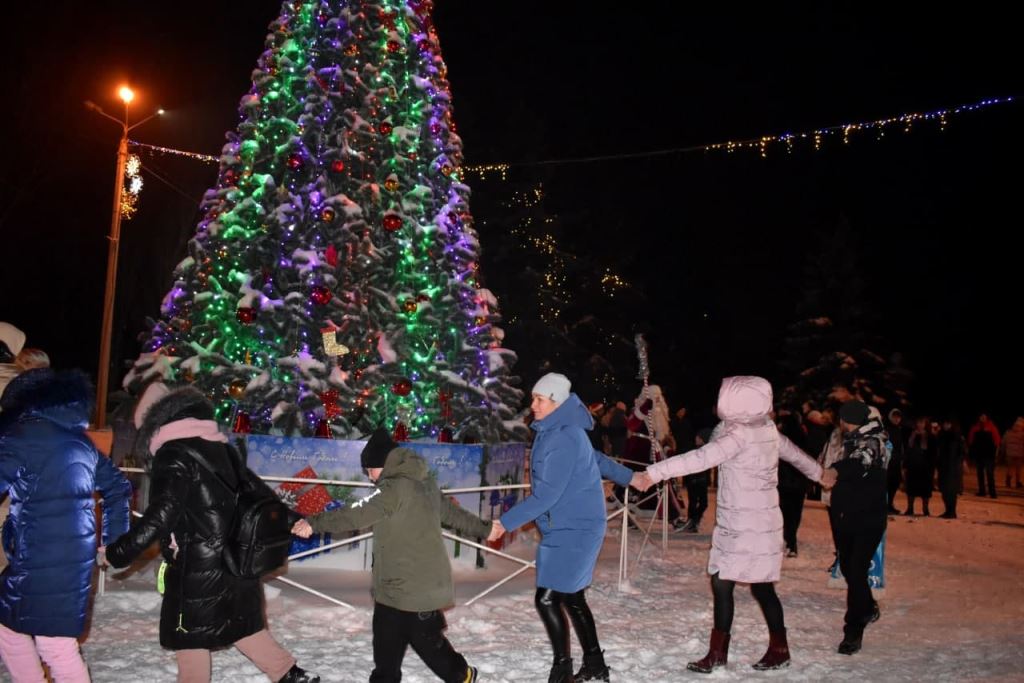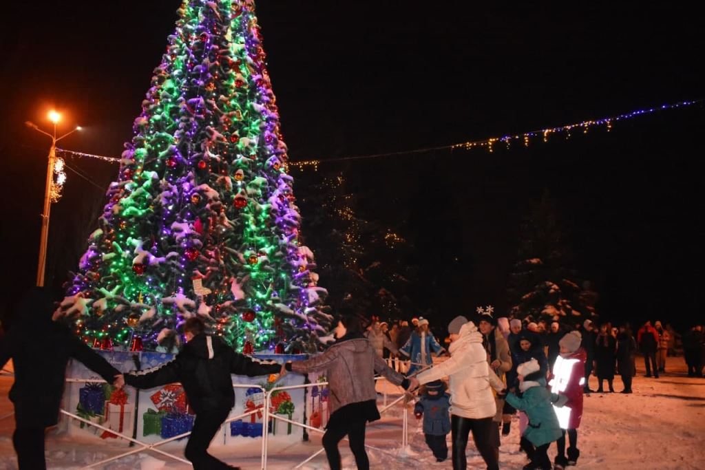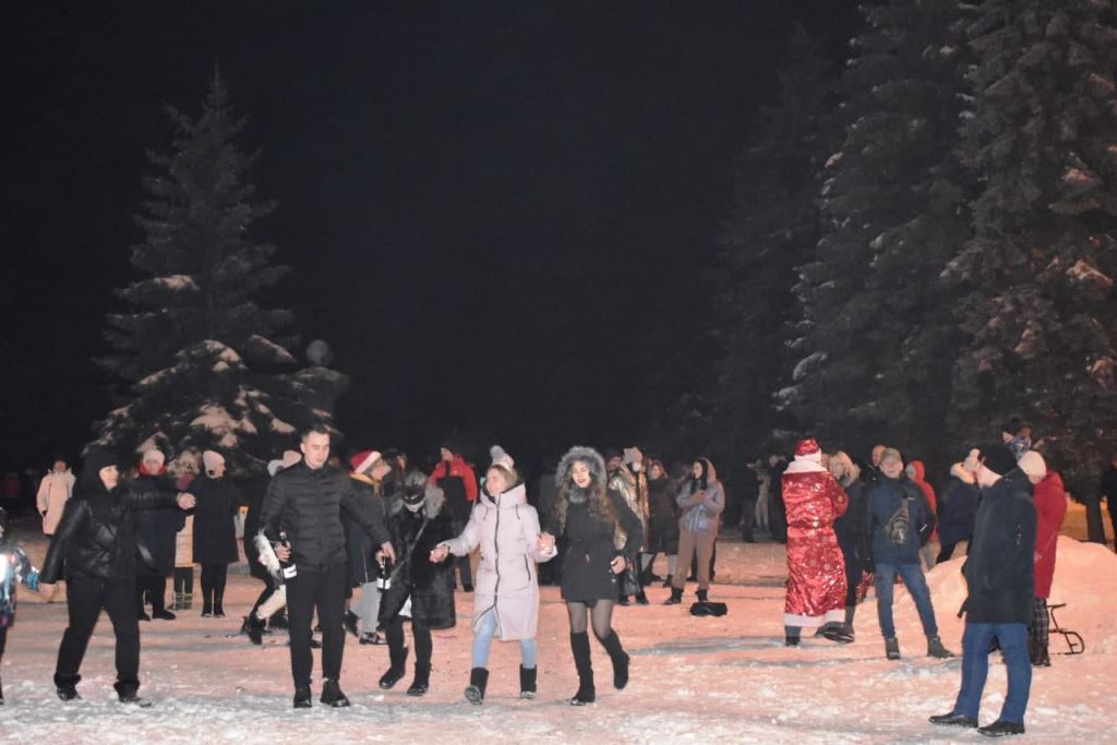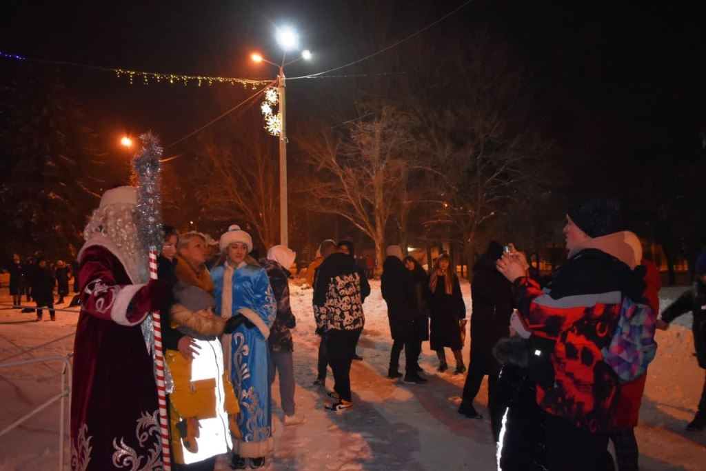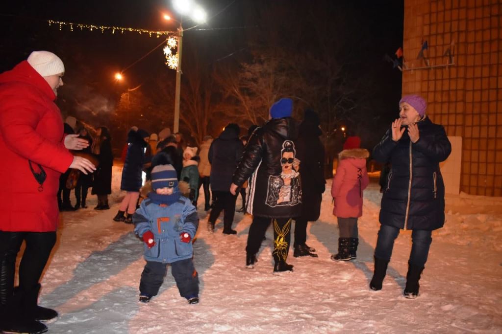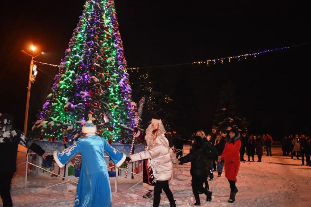 Горожане активно встречали Новый год, водили хороводы вокруг главной городской елки на площади имени Кирова. Дед Мороз со Снегурочкой поздравили детей и взрослых с Новым Годом и вручили сладкие подарки.