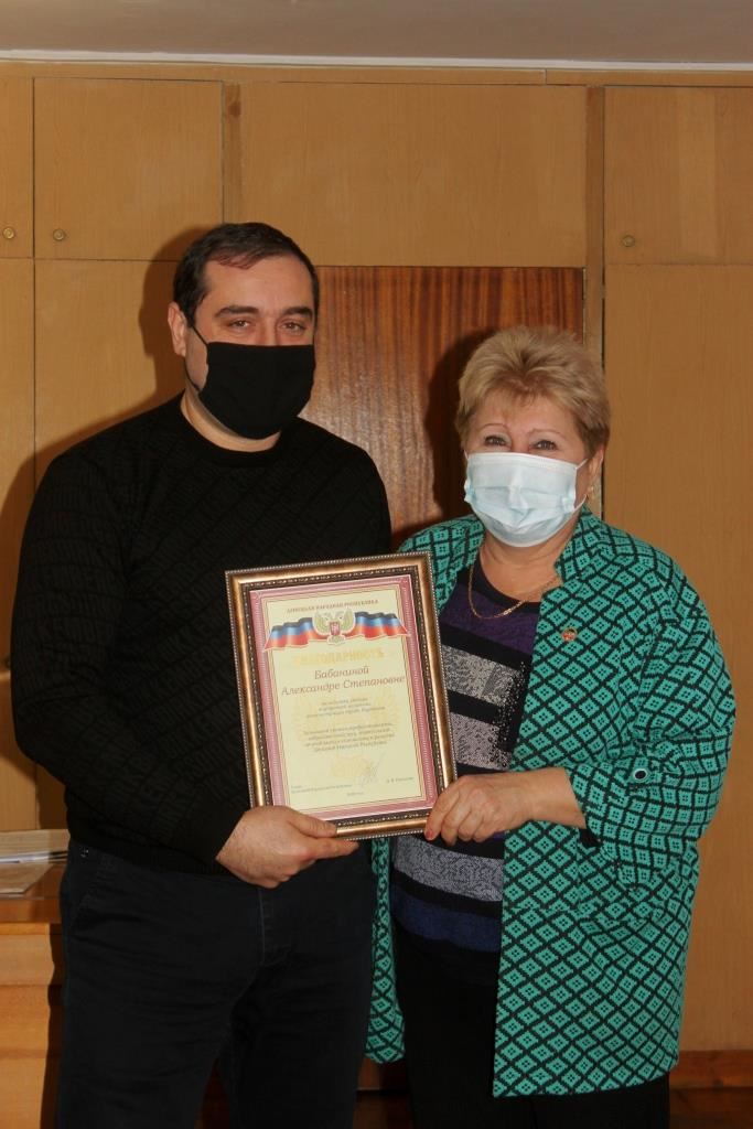 Сегодня, 14 января, по поручению Главы ДНР Дениса Владимировича Пушилина, первый заместитель главы администрации города Кировское Васил Шергелашвили вручил Благодарность Главы Республики начальнику отдела внутренней политики Александре Бабаниной. Благодарность Главы Республики была вручена за высокий уровень профессионализма, добросовестный труд, значительный личный вклад в становление и развитие Донецкой Народной Республики.