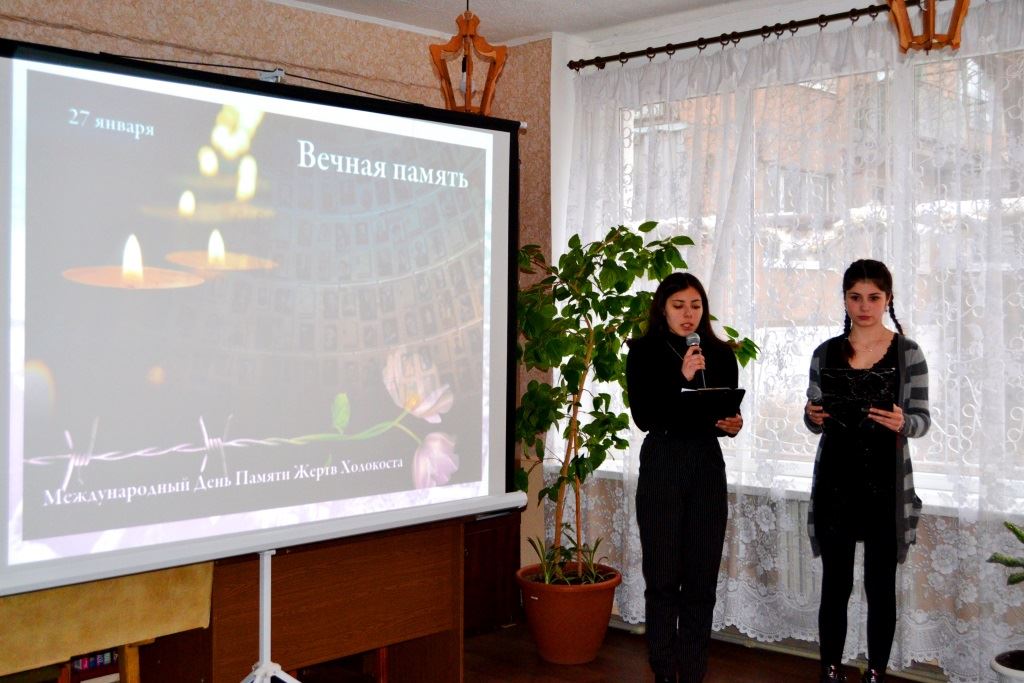 Ведущие мероприятия рассказали присутствующим о многочисленных жертвах фашизма, о жестоком истреблении еврейского народа, которых массово уничтожали в лагерях смерти.