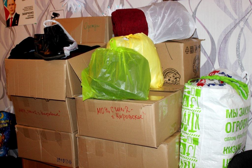 Помощник секретаря МО ОД «ДР» Елена Лукань и старший дружинник Народной дружины города Кировское Дмитрий Патрин передали погорельцам теплую одежду, обувь, кухонные принадлежности, продукты питания, канцелярские принадлежности для школьных занятий 9-летнего Максима и 13-летнего Дениса, а также денежные средства в размере 6660 рублей. Всё это для пострадавших при пожаре собрали учащиеся МОУШ №2 города Кировское и сотрудники Кировского городского управления юстиции Министерства юстиции ДНР.