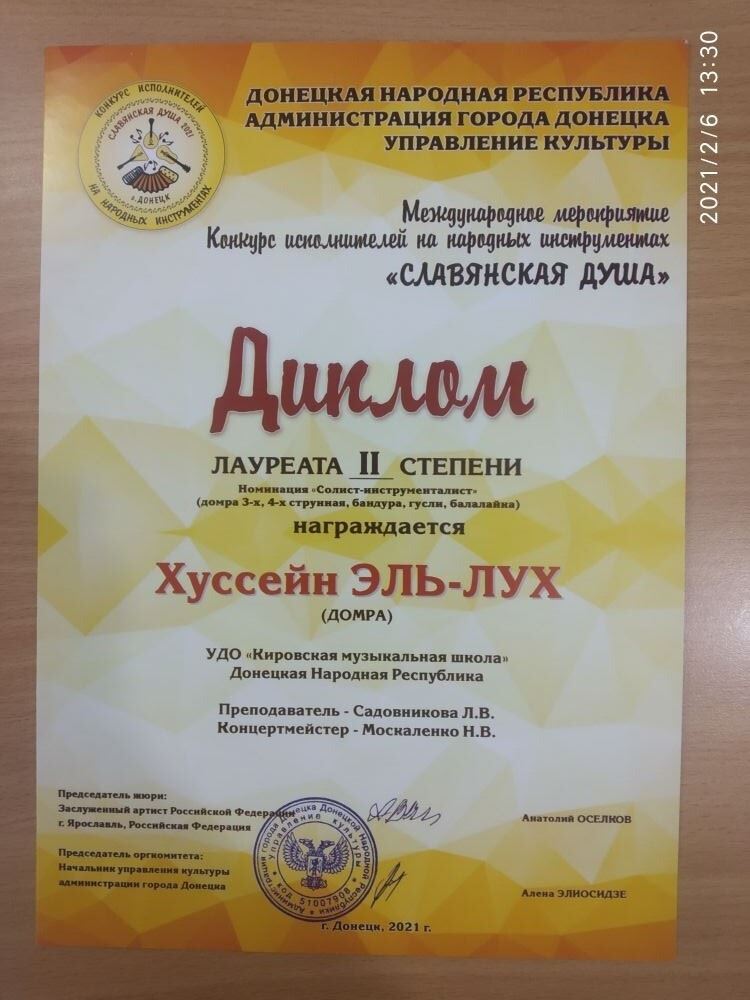 В этом грандиозном мероприятии приняли участие 22 ансамбля, четыре оркестра и свыше 100 солистов. При этом музыканты из других стран выступали в режиме онлайн. По результатам компетентного жюри (в составе которого были профессионалы высшей категории из Москвы) учащиеся Кировской музыкальной школы Эль-Лух Арсений стал Лауреатом II степени, Шульга Матвей получил Диплом участника конкурса! Это высокая оценка строгого жюри! Ребята показали замечательный уровень исполнения своих конкурсных программ! Благодарим концертмейстерам Москаленко Н.В и Шульге Т.Н. за их профессиональную игру, настоящую поддержку юных домристов! Поздравляем педагога Садовникову Л.В. за высокий результат участия ее учеников в конкурсе. Новых вам успешных выступлений, творческого вдохновения!