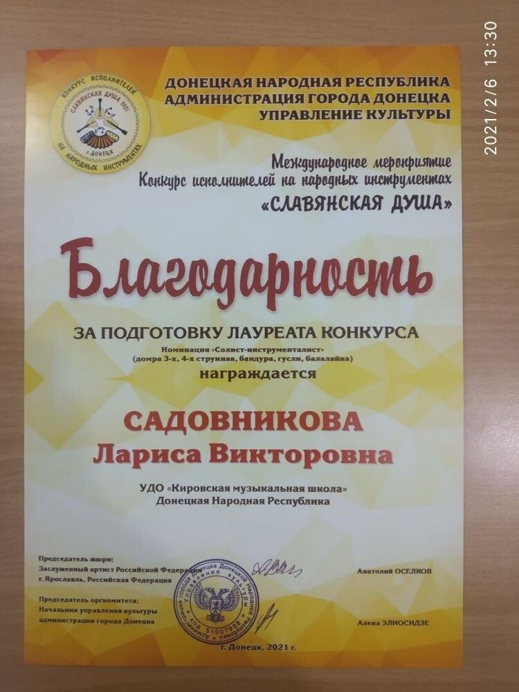 5 февраля в концертном зале Донецкой государственной академической филармонии имени С.С.Прокофьева состоялись торжественная церемония награждения и гала-концерт лауреатов и дипломантов международного конкурса исполнителей на народных инструментах «Славянская душа».