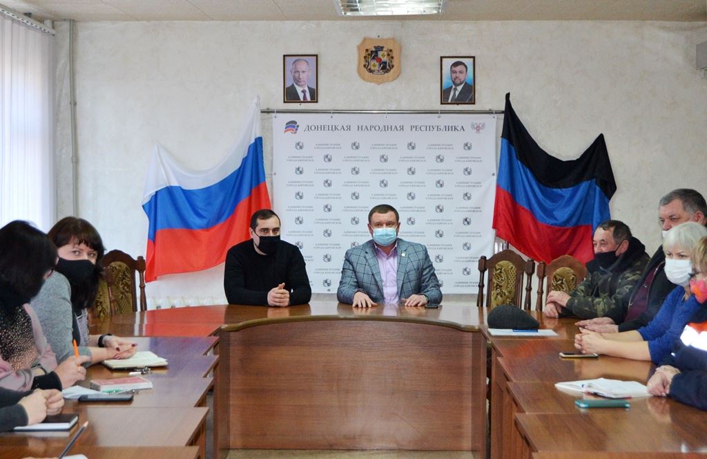Заседание провели глава администрации города Кировское, секретарь местного отделения Общественного Движения “Донецкая Республика” Сергей Ермаков и первый заместитель главы администрации Васил Шергелашвили.