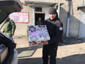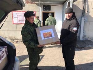 19 февраля активисты местного отделения Общественного Движения “Донецкая Республика” города Кировское передали военнослужащим Народной милиции, несущим службу на передовой, посылки и открытки от детей города.