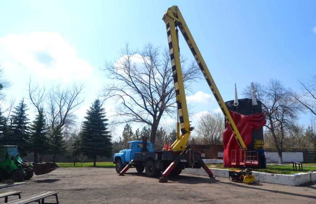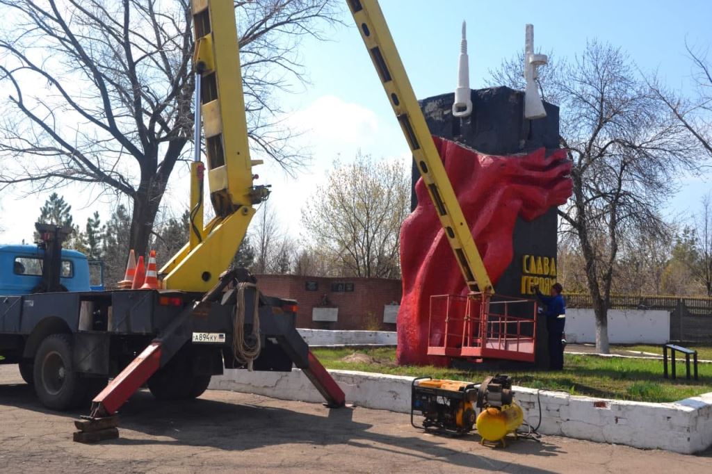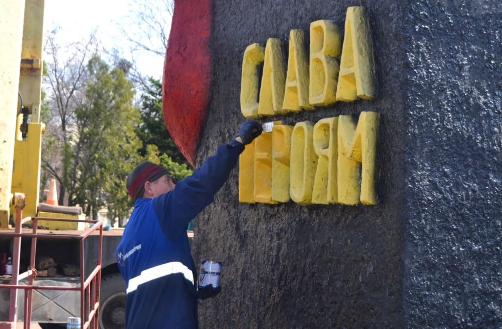 В преддверии майских праздников, коммунальные службы города приводят в надлежащий вид памятники и прилегающую к ним территорию. Сегодня в Аллее Славы была осуществлена комплексная уборка и косметический ремонт Памятного знака боевой и трудовой Славы, а также прилегающей территории.