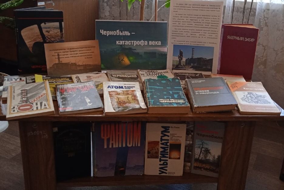 В читальном зале библиотеки была оформлена книжно-иллюстративная выставка «Чернобыль – катастрофа века», на которой представлена литература и материалы, посвященные трагедии на Чернобыльской АЭС и ее последствиям, о взрыве чернобыльского реактора №4, о подвиге людей — ликвидаторов аварии.
