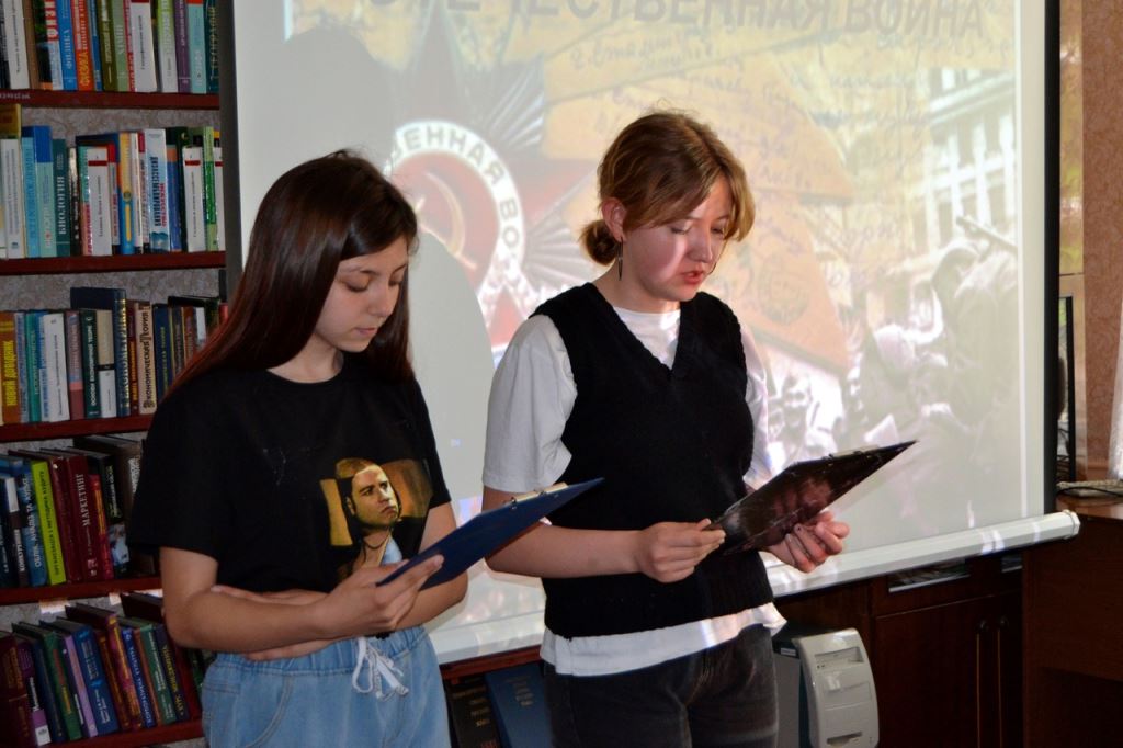 6 мая в читальном зале Кировской городской библиотеки для членов клуба «Патриот Отечества», читателей и жителей города прошел Час военной лирики «От героев былых времен». Эпиграфом к мероприятию стали строки: «Нет, никто не забыт, и навеки ничто не забыто!». В этот день про войну вспоминали по-особенному – через стихи и песни военных лет. Ведущие мероприятия Посникова Алина и Славная Екатерина рассказали о том, как поэзия и музыка того времени показывали эпизоды войны, которые можно сложить в единую картину и увидеть, как в них отразилась душа всего народа. Они показывали не только любовь к Родине и готовность пойти на подвиг, но и личные мысли и чувства солдат.