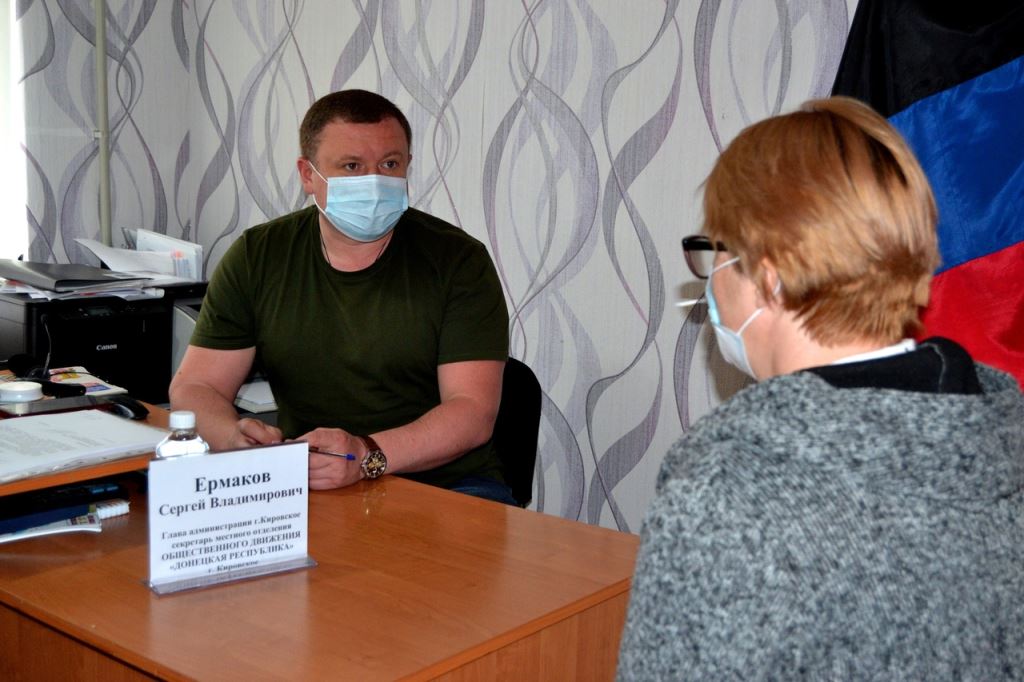 Во вторник, 18 мая, глава администрации города Кировское, секретарь местного отделения Общественного Движения «Донецкая Республика» Сергей Ермаков провёл приём граждан в общественной приёмной Председателя ОД «ДР» Дениса Пушилина в городе Кировское.