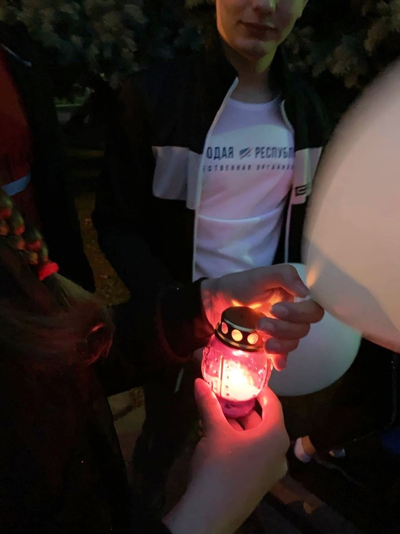 Ребята почтили память жертв минутой молчания. Место традиционных «небесных фонариков» в этом году, в связи с плохой погодой, заняли лампадки и белые шары – символ чистоты детских душ…?