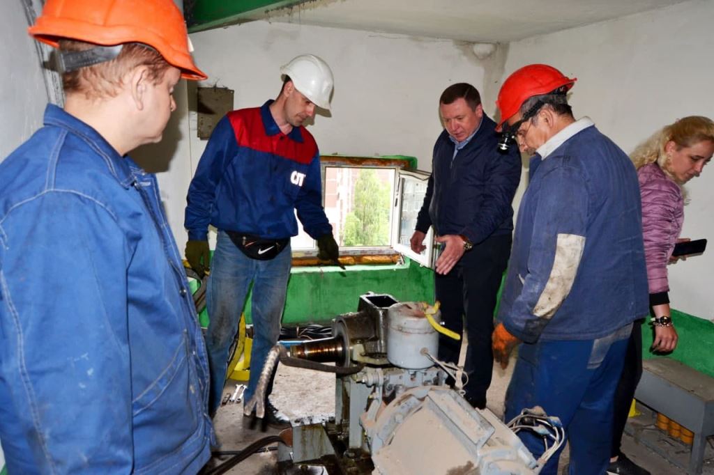 Сегодня, 4 июня, глава администрации города Кировское Сергей Ермаков ознакомился с ходом работ по капитальному ремонту лифтового хозяйства, осуществляющихся на объектах согласно результатам экспертного обследования технических устройств. На данный момент сотрудниками ЧП «Рассвет» ведутся работы по замене манжетов редуктора для обеспечения бесперебойной работы электрического механизма подъема лифта первого подъезда дома №21 микрорайона Молодежный.