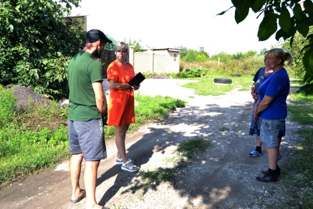 В понедельник, 16 августа, начальник юридического отдела администрации города Кировское Анна Кушнир встретилась с жителями города, проживающими в домах переулка Зелёный.