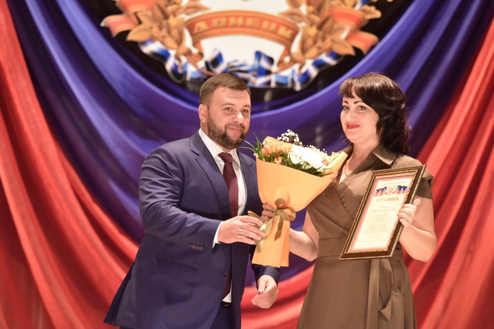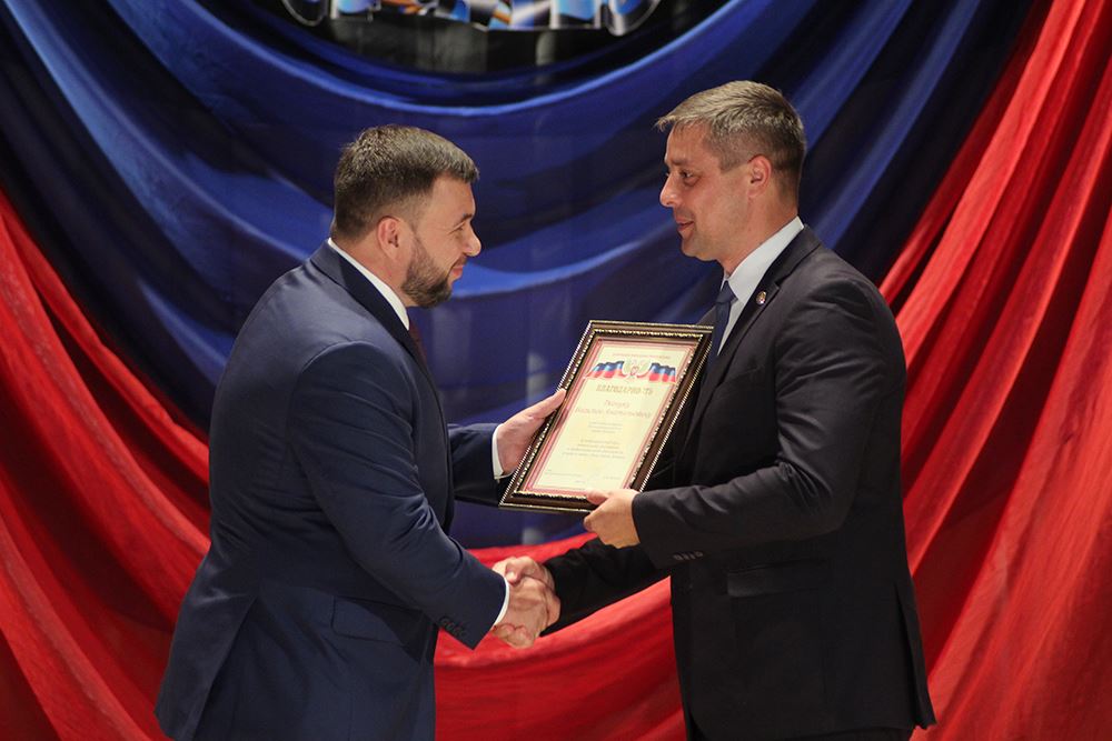 В среду, 25 августа, в преддверии Дня города Донецка во Дворце культуры имени В. В. Куйбышева состоялось торжественное собрание, в котором приняли участие Глава Донецкой Народной Республики Денис Пушилин, Председатель Народного Совета Владимир Бидёвка, глава администрации города Донецка Алексей Кулемзин, жители столицы Республики.