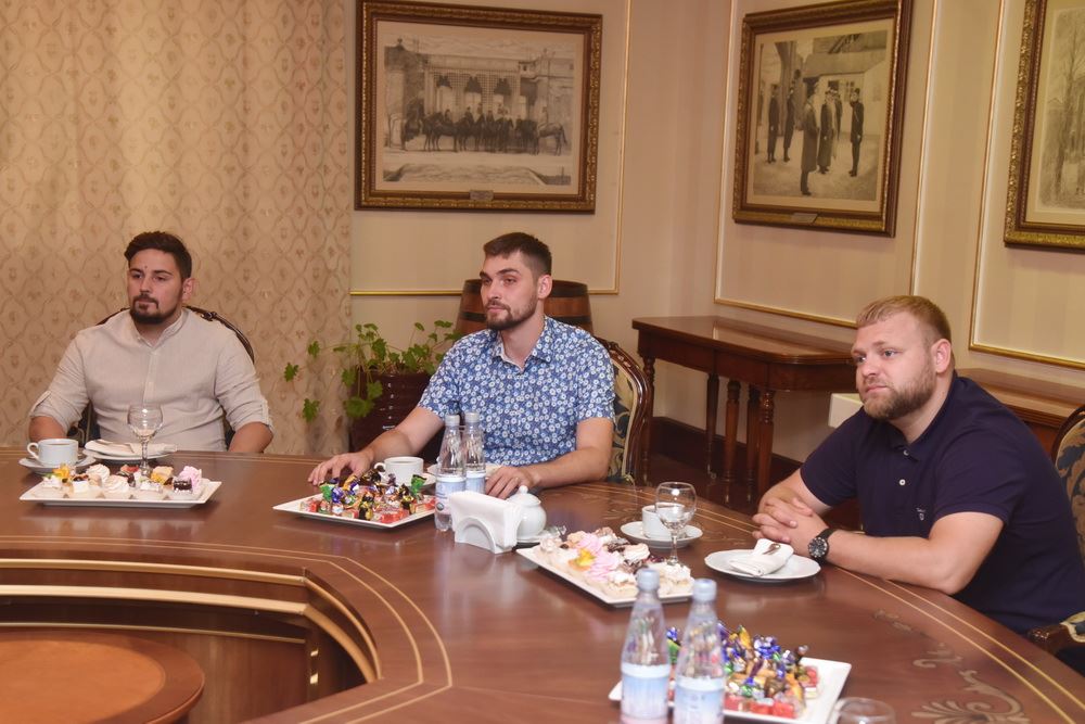 На встрече присутствовали руководитель общественной организации «Молодая Республика» Кирилл Макаров, и. о. руководителя Народной дружины ДНР Владимир Тараненко, а также представители Всероссийской общественной организации «Молодая Гвардия Единой России»: председатель Координационного совета Денис Давыдов, федеральный координатор по Южному федеральному округу Владимир Кучеров, руководитель регионального штаба Московского городского отделения Александр Лебедев, руководитель штаба Ростовского регионального отделения Николай Ромашенко, председатель Центральной контрольно-ревизионной комиссии Сергей Лебедев.