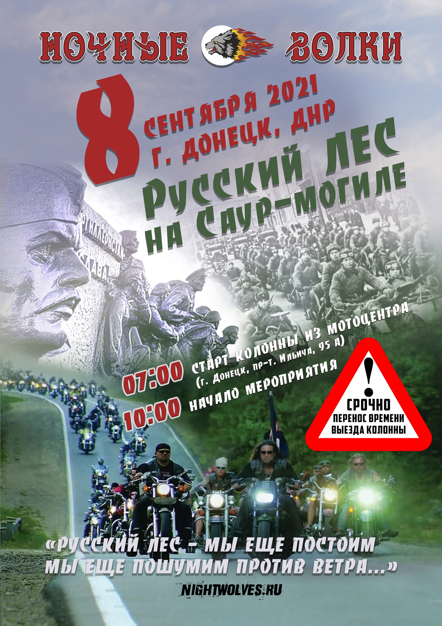 Далее, в память о всех защитниках Родины, на территории мемориального комплекса «Саур-Могила» состоится высадка “Русского леса” от всероссийского мотоклуба “Ночные Волки”. Будут высажены саженцы, привезенные с разных уголков России, с Куликова поля, из Троице-Сергиевой Лавры, с Молодинского поля, из Великого Новгорода и Переславль-Залесского. Так же мотоциклисты покажут жителям Республики короткий эпизод из предстоящего Байк Шоу под названием “Русский Лес”, которое состоиться 6-7 августа 2022 г.