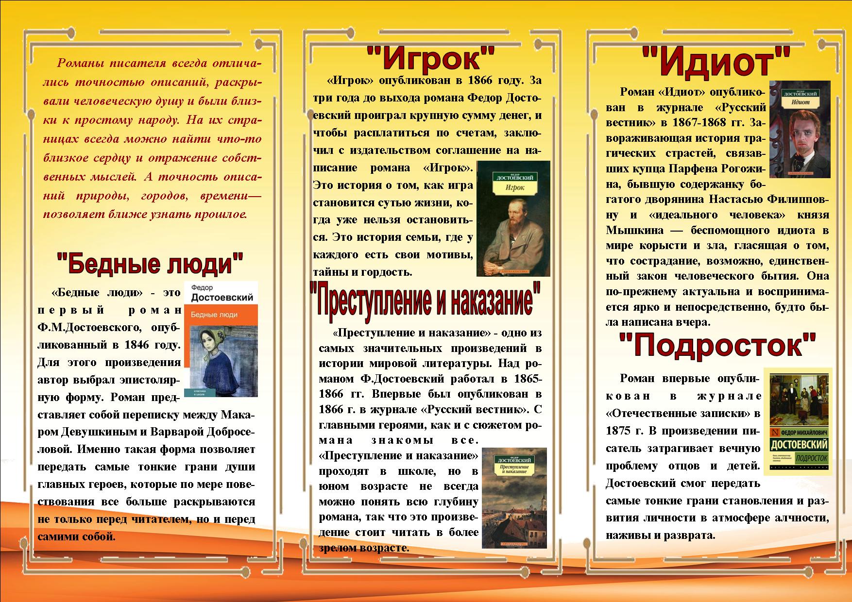 Произведения Ф. М. Достоевского остаются актуальными для современного общества, считаются литературными шедеврами и изучаются из поколения в поколение. Классик русской литературы остается одним из самых читаемых во всем мире: современный читатель продолжает открывать для себя все новые грани его гения.
