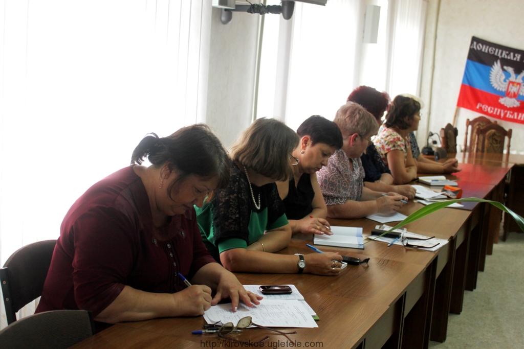 В нем приняли участие и.о. главы администрации города Кировское Сергей Ермаков, начальник отдела по делам семьи и детей Ольга Городняя, начальник городского отдела образования Ирина Арзамасцева, главный специалист отдела по делам семьи и детей Елена Хижняк, директора общеобразовательных школ города и заместители директоров по учебно-воспитательной работе, а также руководители учреждений города — городского отдела МВД ДНР, центра занятости, Центральной городской больницы и других.