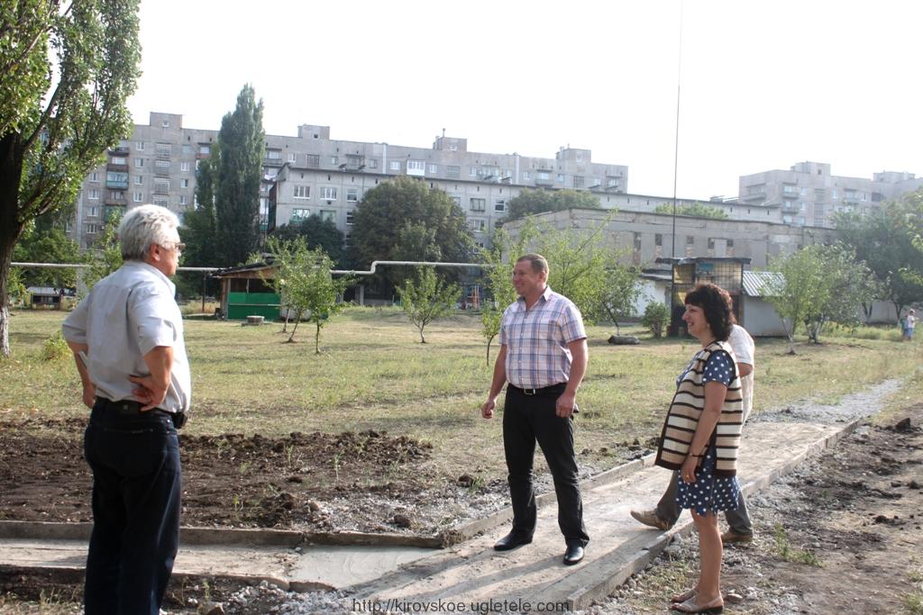 Также представители администрации побывали в так называемой Аллее Героев – площадке, которую жители близлежащих домов микрорайона решили облагородить и в дальнейшем установить памятник защитникам Республики. Там уже высажены деревья и понемногу укладываются дорожки.