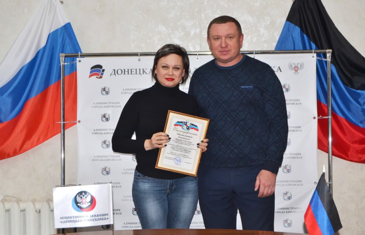 Сегодня, 28 декабря, глава администрации города Кировское, секретарь местного отделения Общественного Движения “Донецкая Республика” Сергей Ермаков вручил благодарности активистам Общественного Движения “Донецкая Республика” за активную гражданскую позицию и личный вклад в развитие ОД “ДР”.