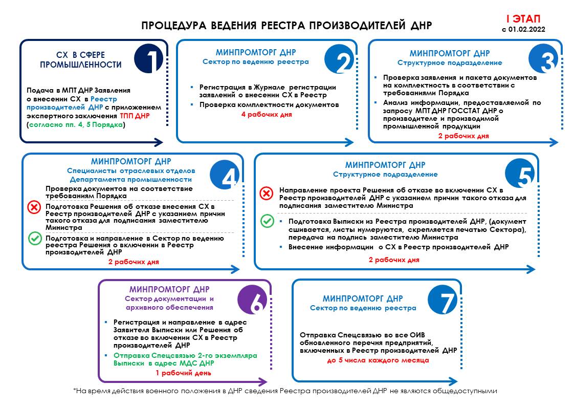 Министерство промышленности и торговли Донецкой Народной Республики с 1 февраля 2022 года осуществляет ведение Реестра производителей Донецкой Народной Республики.