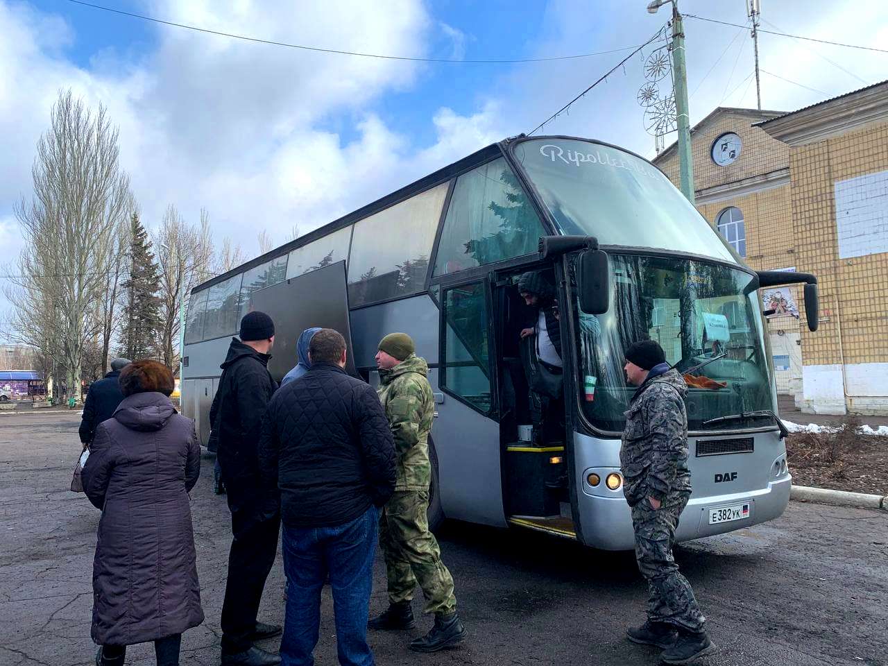 Сегодня автобусы отправлялись в Харцызск, откуда затем эвакуируемые отправятся в РФ железнодорожным транспортом.