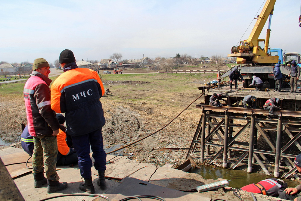 На данный момент уже восстановлены 5 мостовых переправ. В районе Гранитного завершены работы по обустройству временной переправы через реку Кальмиус. Непосредственное участие в восстановительных работах принимали не только сотрудники МЧС, но и местные жители.