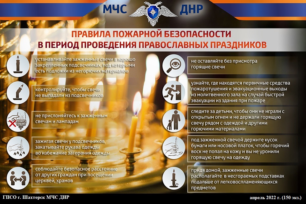 Празднование Пасхи традиционно связано с использованием открытого огня, в том числе свечей и лампад, что требует от священнослужителей и прихожан строгого соблюдения правил пожарной безопасности.