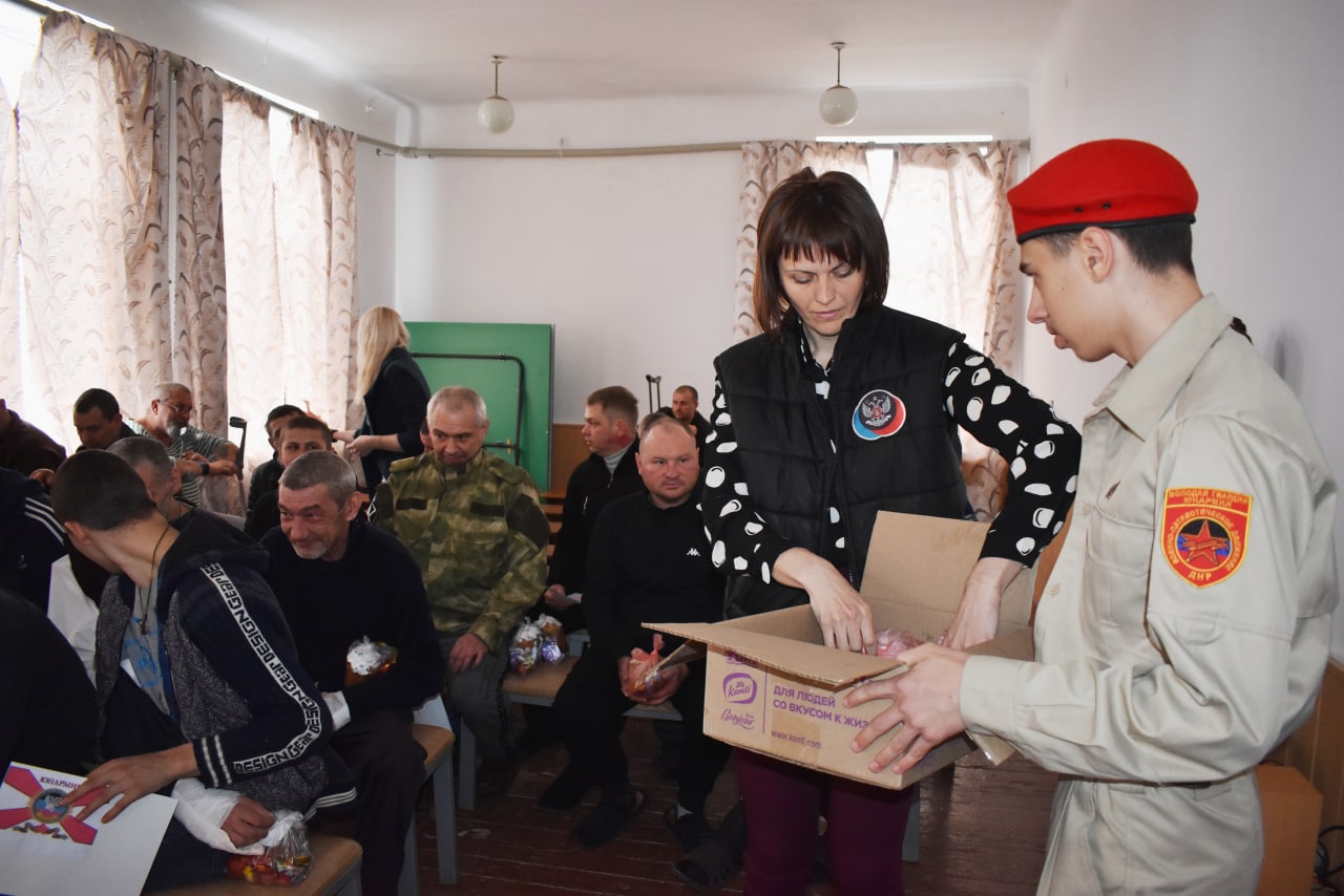 Юнармейцы и воспитанники музыкальной школы спели несколько патриотических песен и прочли стихи для военнослужащих, пожелали им скорейшего выздоровления. Также общественники, в преддверье праздника Пасхи, вручили им пасхальные угощенья.