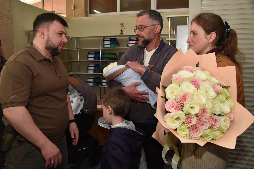 В четверг, 28 апреля, Глава Донецкой Народной Республики Денис Пушилин посетил отдел ЗАГС на базе одного из центров помощи населению в Мариуполе и вручил первое свидетельство о рождении гражданина Донецкой Народной Республики жителю освобожденного города.