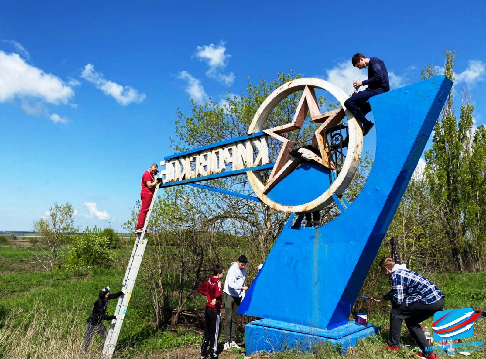 🎨Активисты местного городского штаба ОО «Молодая Республика» совместно с ОО «ВПД «Молодая Гвардия – Юнармия» при содействии администрации города выполнили покраску одной из стел на въезде в город.