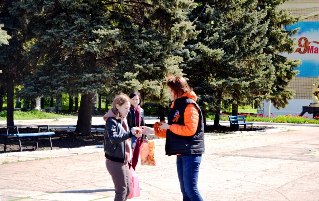 Сегодня, 6 мая, активисты Общественного Движения «Донецкая Республика» и Общественной Организации “Молодая Республика” раздали кировчанам георгиевские ленточки на главной площади города.